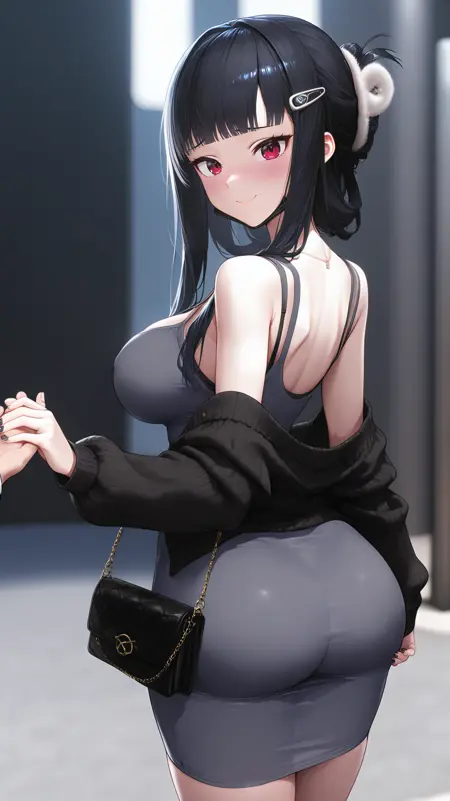 示例提示:长发,乳房,刘海,发髻,大乳房,黑发,红眼,齐刘海,