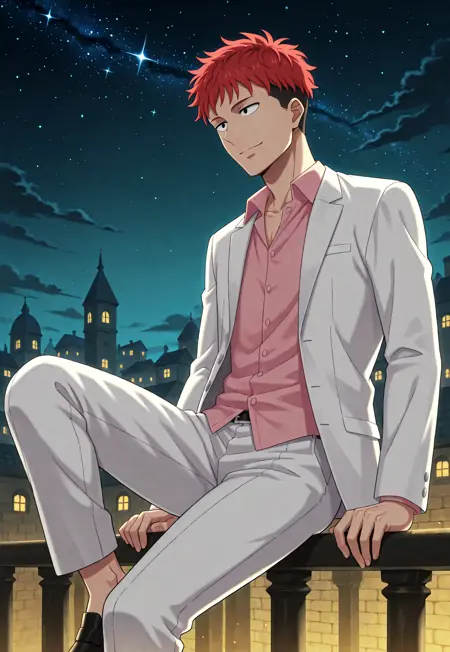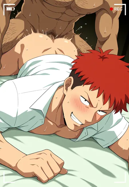 Nezu Taro, red hair, short hair, shaved black sides, black eyes,