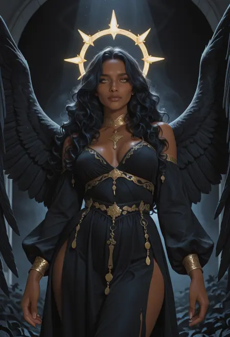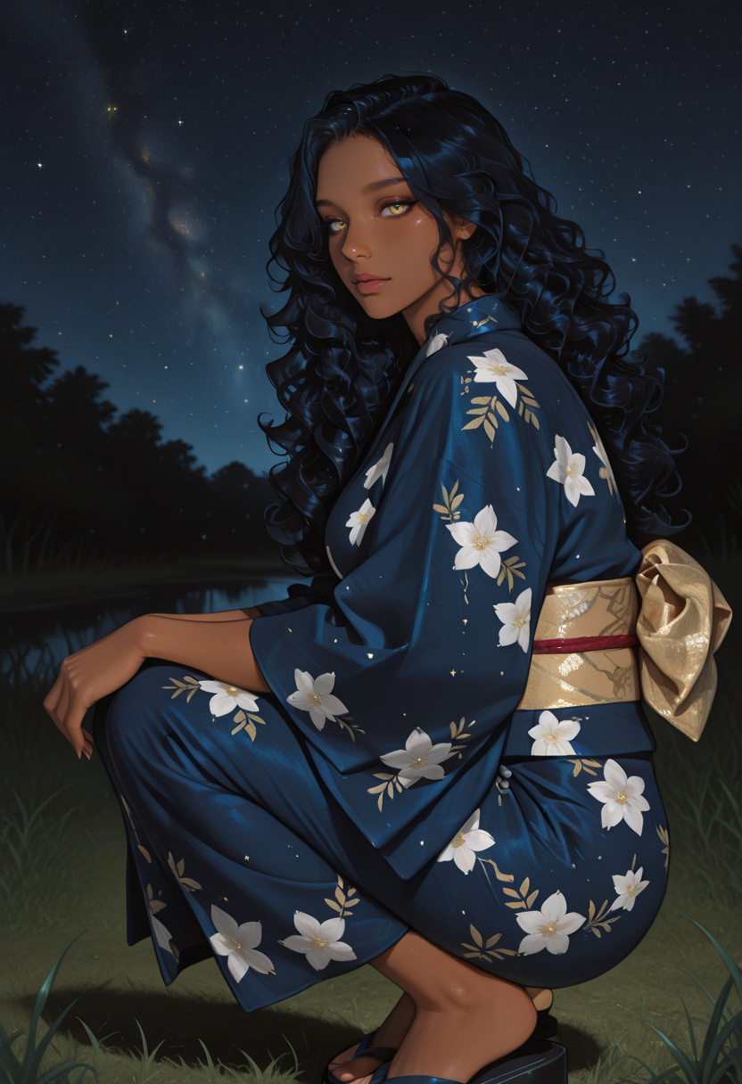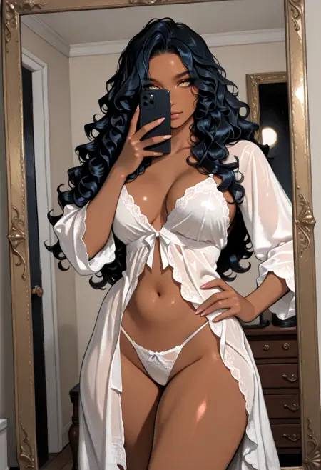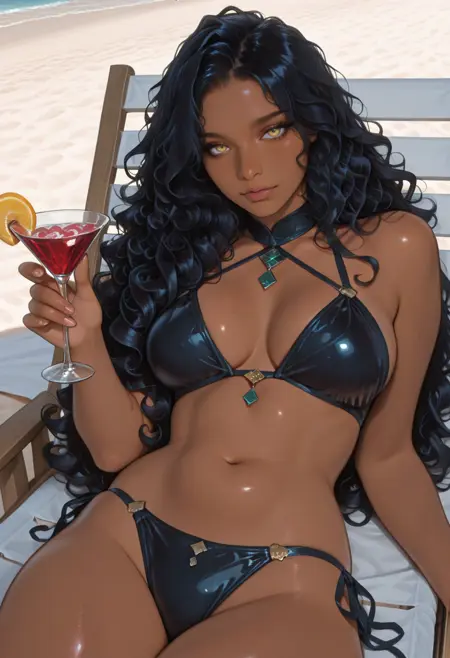 OCBlyDnc, 1girl, long hair, dark-skinned female, wavy hair, yellow eyes