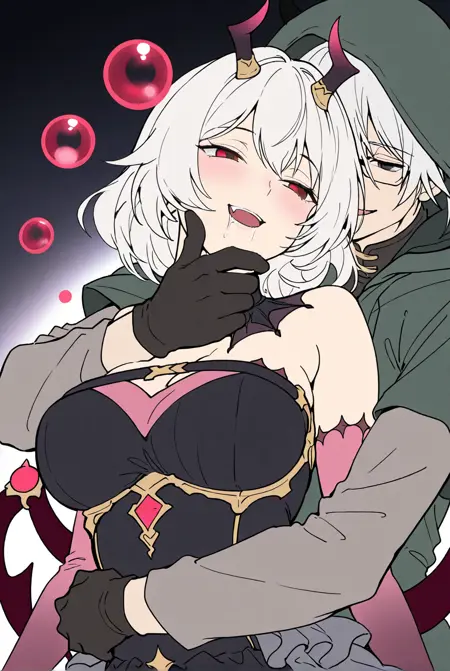 • 흰색 머리카락, (긴 머리카락), 뿔, 검은 눈, 빨간 눈, 다색 눈;
