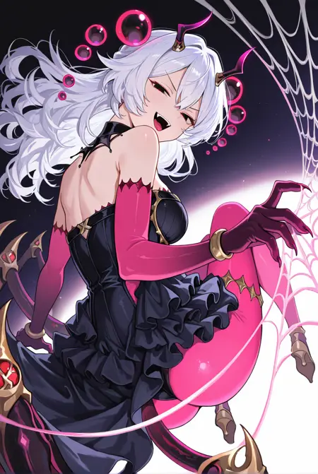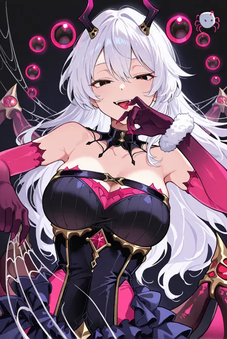 • 기본 복장: 분리된 칼라, 어깨 끈 없는 드레스, 가슴 스트랩, 검은 드레스, 옷 자름, 금장식, (분홍색) 팔꿈치 장갑, 털장식(패 wristband), (분홍색) 팬티스타킹, 프릴;
