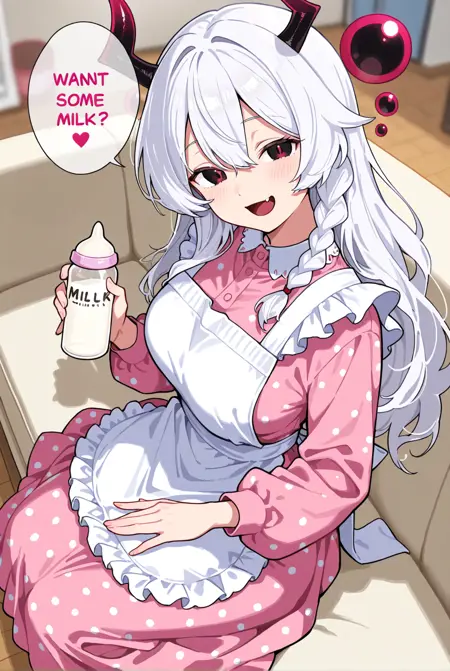 白发,(长发),角,黑眼,红眼,多色眼睛;