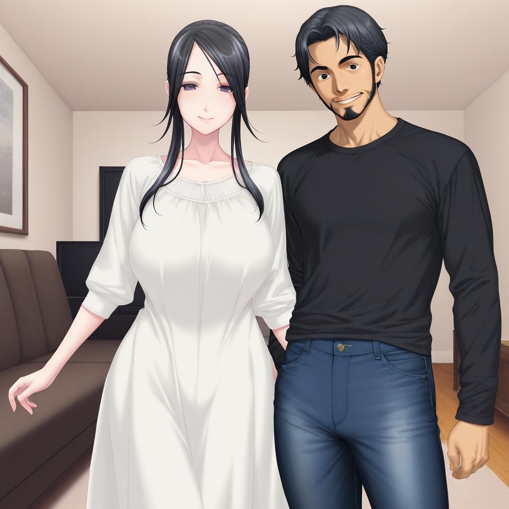 Kimihiko Okano:: 1boy, kimihiko, black hair, short hair, black eyes, facial hair,