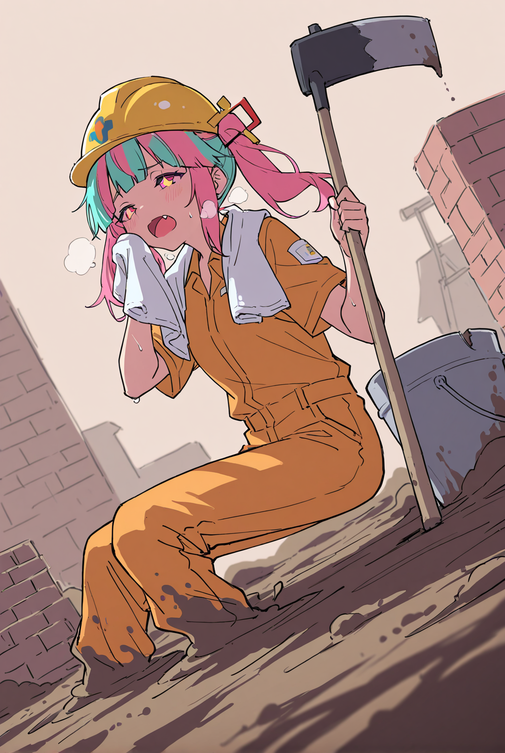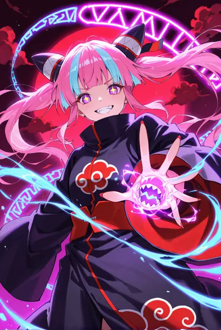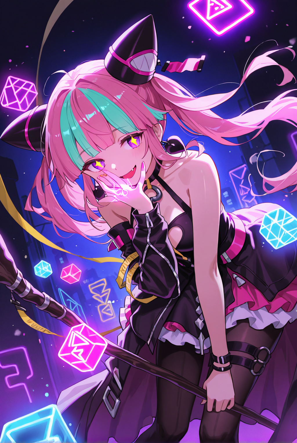 粉色头发,水蓝色头发,多色头发,双马尾,紫色眼睛,(闪亮的眼睛);