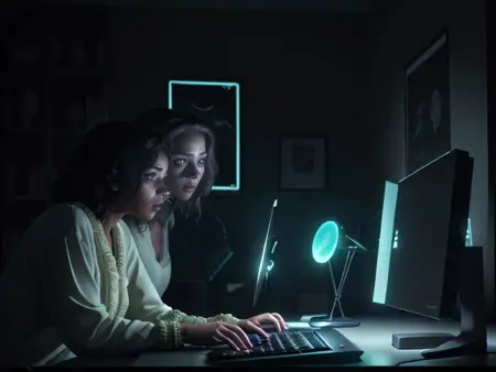 1つ目:多くの種類のデバイススクリーンを見つめる人物を描き、その人物がデバイスのスクリーンの光で照らされているようにすることができます。