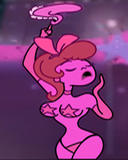 글로리아-분홍색 머리카락, 분홍색 피부, 곡선형 몸매, 긴 다리, 분홍색 팬티, 분홍색 리본, 분홍색 초커, 분홍색 스타킹, 하이힐, 별 모양 젖가리 커버