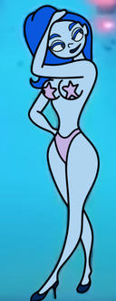브리짓-파란색 머리카락, 긴 머리, 파란색 피부, 곡선형 몸매, 긴 다리, 별 모양 젖가리 커버, 분홍색 팬티, 하이힐