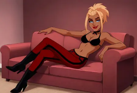 憑依:*(長い髪を他のヘアスタイルに置き換え)、チョーカー、ダークサイドスーツ、胸元、腹出し、へそ、ビキニトップのみ、ズボン、ブーツ、ハイヒール