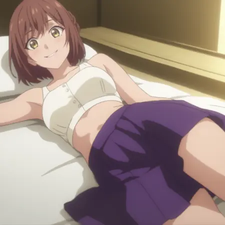 RyoukoBath, 白いキャミソール, 紫のスカート, ミニスカート, 袖なし, 腹部, 锁骨,