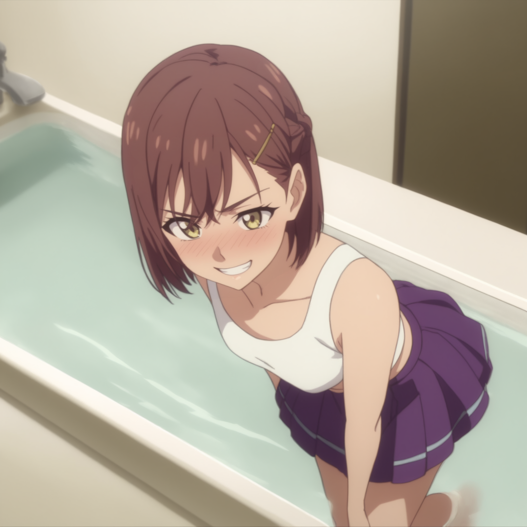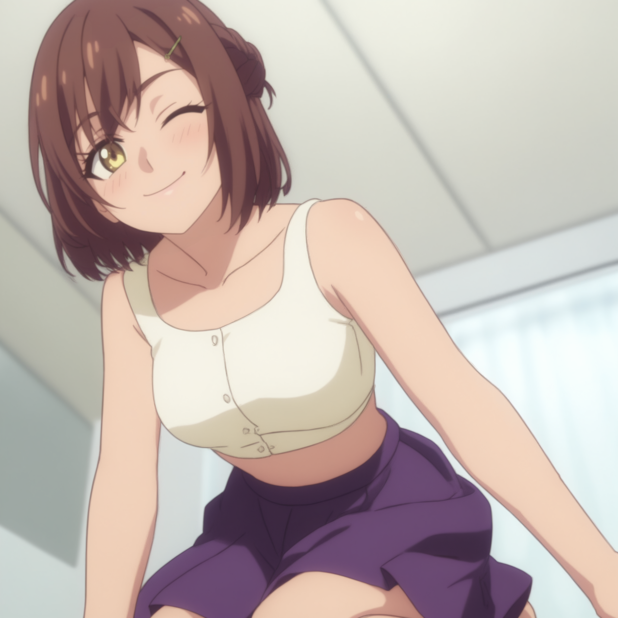 RyoukoSuzunone,黄眼睛,棕色头发,短发,发辫,发饰,发夹,
