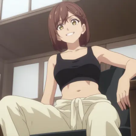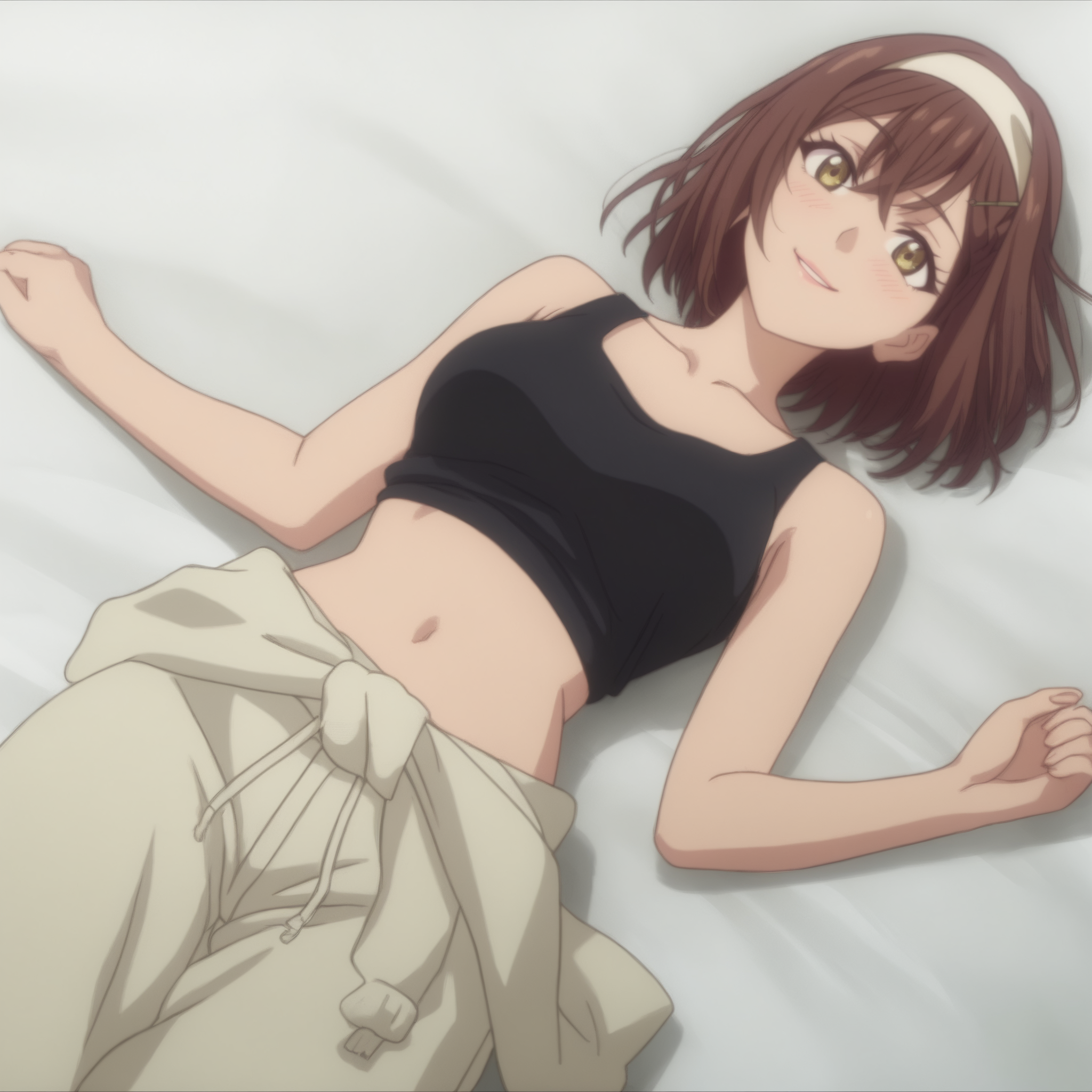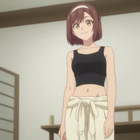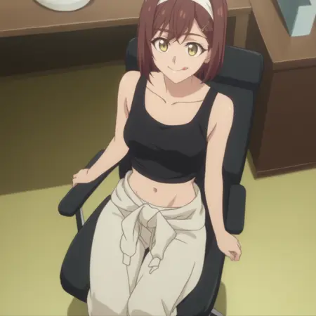 RyoukoTanktop,发带,黑色背心,锁骨,短款背心,露腹,肚脐,腰部衣物,裤子,宽松长裤,