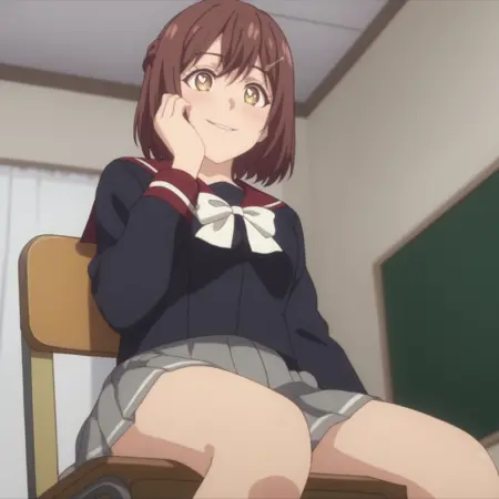 RyoukoSuzunone, 黄色い目, 茶色の髪, 短い髪, 編み込み, 髪の飾り, ヘアクリップ,