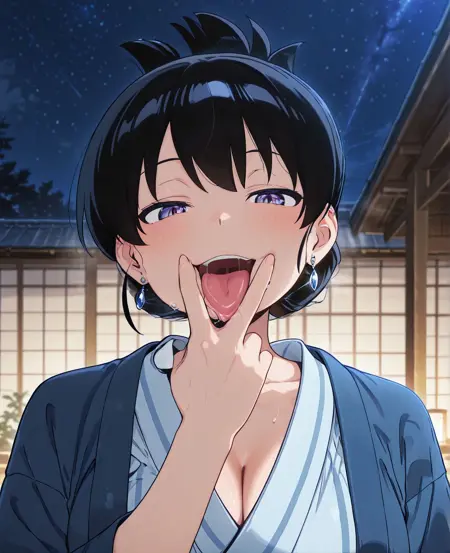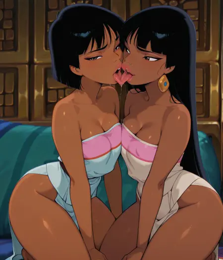 5.2girls,tongue out, long tongue, kiss,yuri,