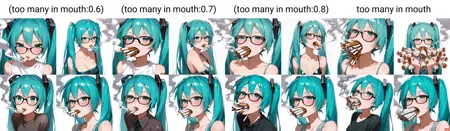 你可能需要调整“too many in mouth”的标签权重,建议使用 (too many in mouth:0.8)