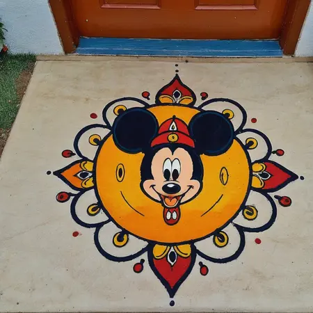 Use keywords - Subject design, rangoli style, 2d ,colour, flat, minimalism