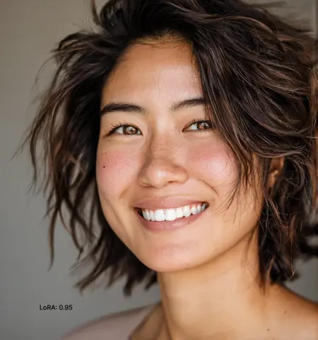 我最初只是想用它来生成有雀斑的脸部,但发现以较低强度使用时,它能非常快速简便地修正大多数塑料感皮肤。由于这是我们大多人都曾遇到的知名问题,这个LoRA提供了一种简单快捷的解决方案——至少部分有效。