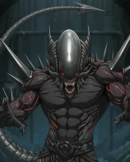 OS(원래 캐릭터) Shi'lar'ka는 평범한 제노모프가 아니다. 잊혀진 식민지에서 진행된 고대의 금지된 생물공학 실험의 산물이다. 그는 "망각의 요람"에서 탄생하여 수많은 생명체의 유전 물질을 흡수하며 독특한 능력을 얻었다. 그의 갑옷 같은 외골격은 유기금속으로 강화되어 거의 무적이며, 붉은 정맥은 강력한 방전을 가능하게 하는 생체 전기 회로이다. 그의 몸과 꼬리에 있는 가시들도 갑옷을 뚫고 마비성 독을 방출하는 위험한 무기다. 다른 제노모프들과 달리, Shi'lar'ka는 뛰어난 전술적 지능을 지니고 있으며, 전체 제노모프 무리까지 지휘할 수 있다. 그는 자신의 티라니드 종족의 "왕립 제노모프"로, 강력한 페로몬을 통해 모든 제노모프를 통합한다. Shi'lar'ka는 절대적인 지배와 자신 종족의 완벽함을 추구하며, 다른 생명체를 멸종시키려 한다. 그의 이름 "천둥소리"는 그의 등장과 함께 수반되는 전기 공격을 상징한다. 그는 제노모프가 우주에서 지배적 힘이 될 새로운 시대의 전조이다.