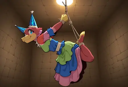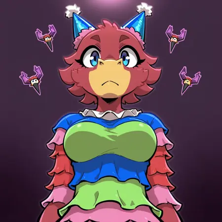 Ani: ani, furry, female, animate inanimate, living pinata, donkey, party hat, blue eyes, red fur