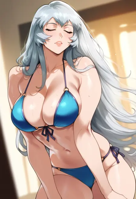 トリガー:周雲総龍、長い髪、灰色の髪の女性、目を閉じた、大きな胸、制服、スカート、刀、指なし手袋