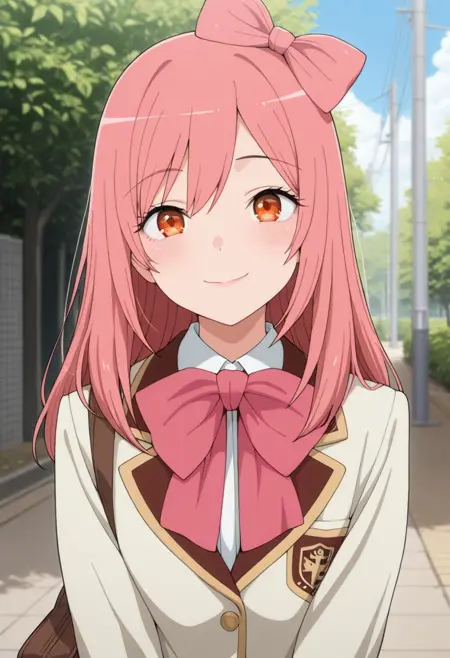 • Outfit 1: himeno amane, long hair, pink hair, orange eyes