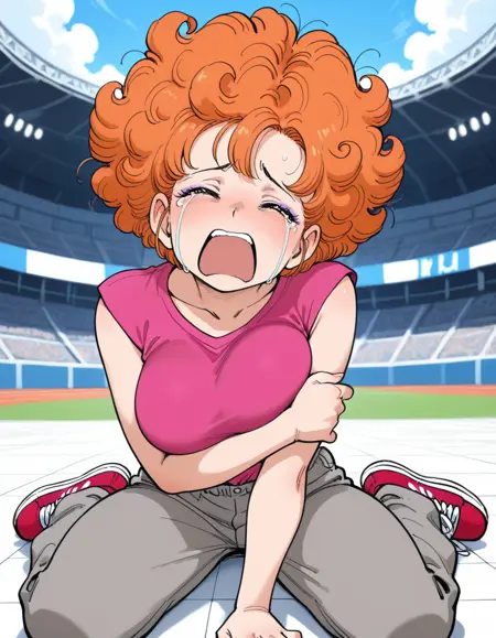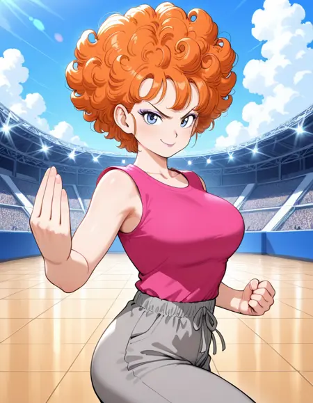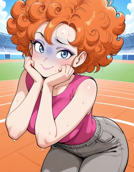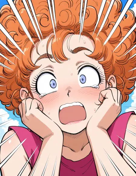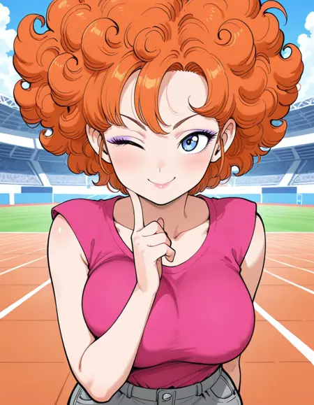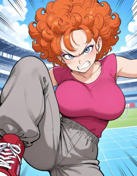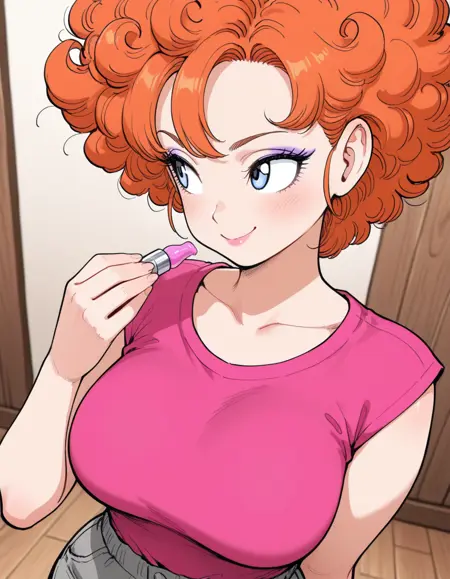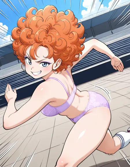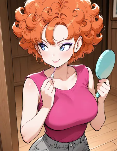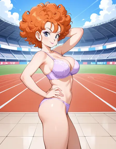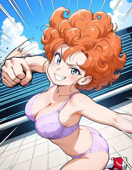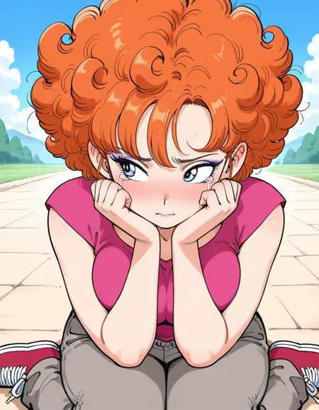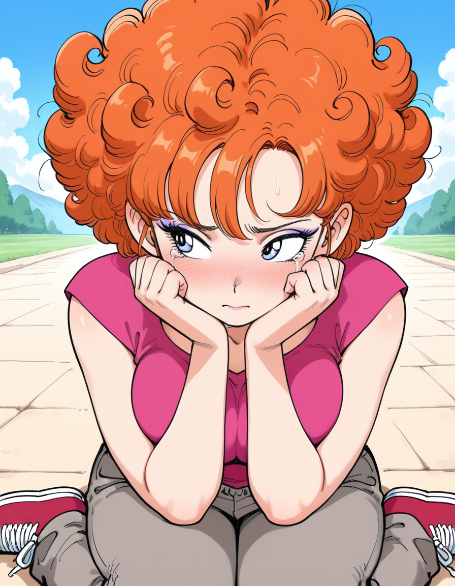 | 학습된 단어 | (db-ranfan), (official style, blue eyes, purple eyeliner, orange hair, curly hair, large breasts)복사됨! (pink shirt, scoop neck, collarbone, sleeveless, grey pants, red sneakers)복사됨! (purple lingerie, lace-trimmed bra, lace-trimmed panties, white socks, red sneakers)복사됨! |