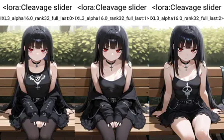 This is a slider LoRA - you can choose whatever weight you want, so experiment and find what suits you best. A positive weight adds cleavage. You can use even higher weights such as 5 and above - it all depends on characters and checkpoints.