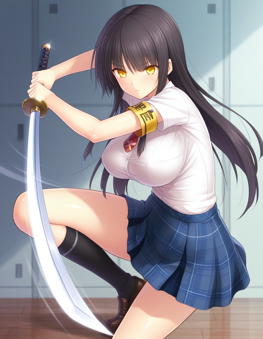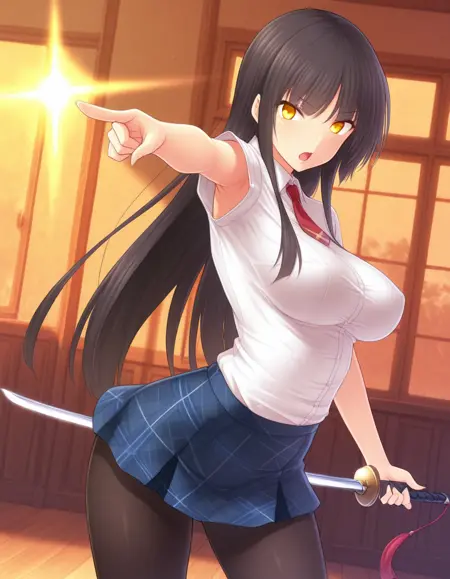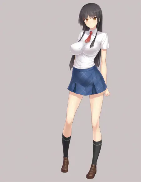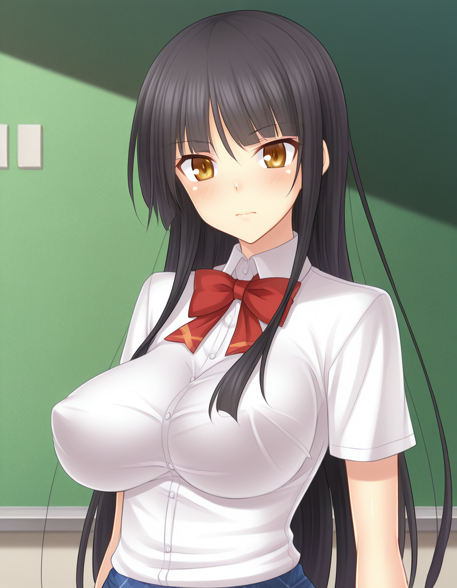 mai_ma_rin, long_hair, black_hair, brown_eyes, large_breasts, school_uniform