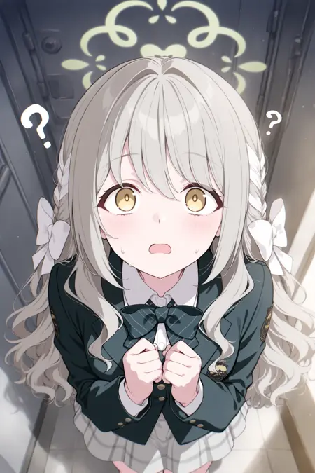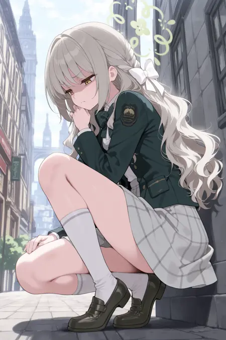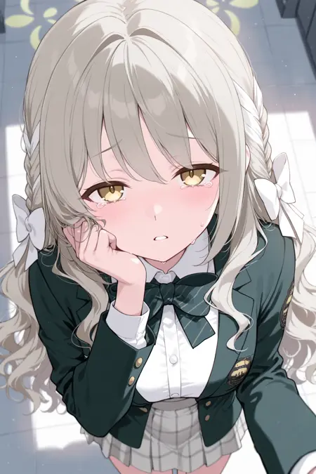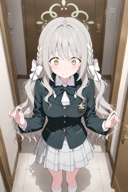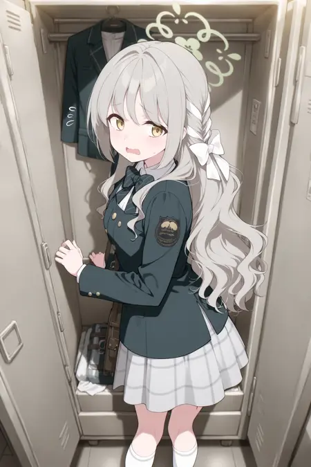 推奨重みは約0.8。ゲーム実装後の素材を使用して作成しているため、実装前は不明だった体の右側が学習不足になっていますが、リボンは左右正しく表示され、制服を着る際にインナーも着用されます。