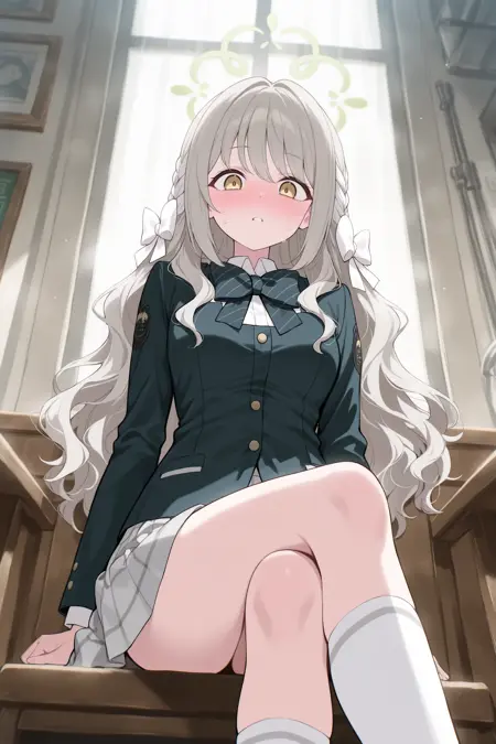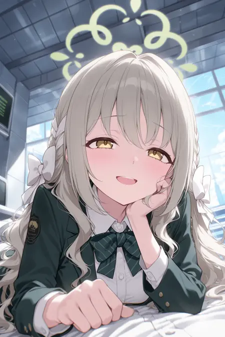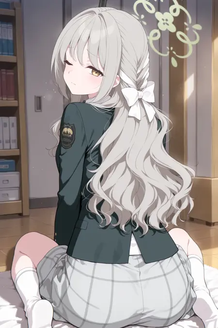 とりあえずのお守りとして… blue archive, halo, grey hair, yellow eyes, hair bow, braid, long hair