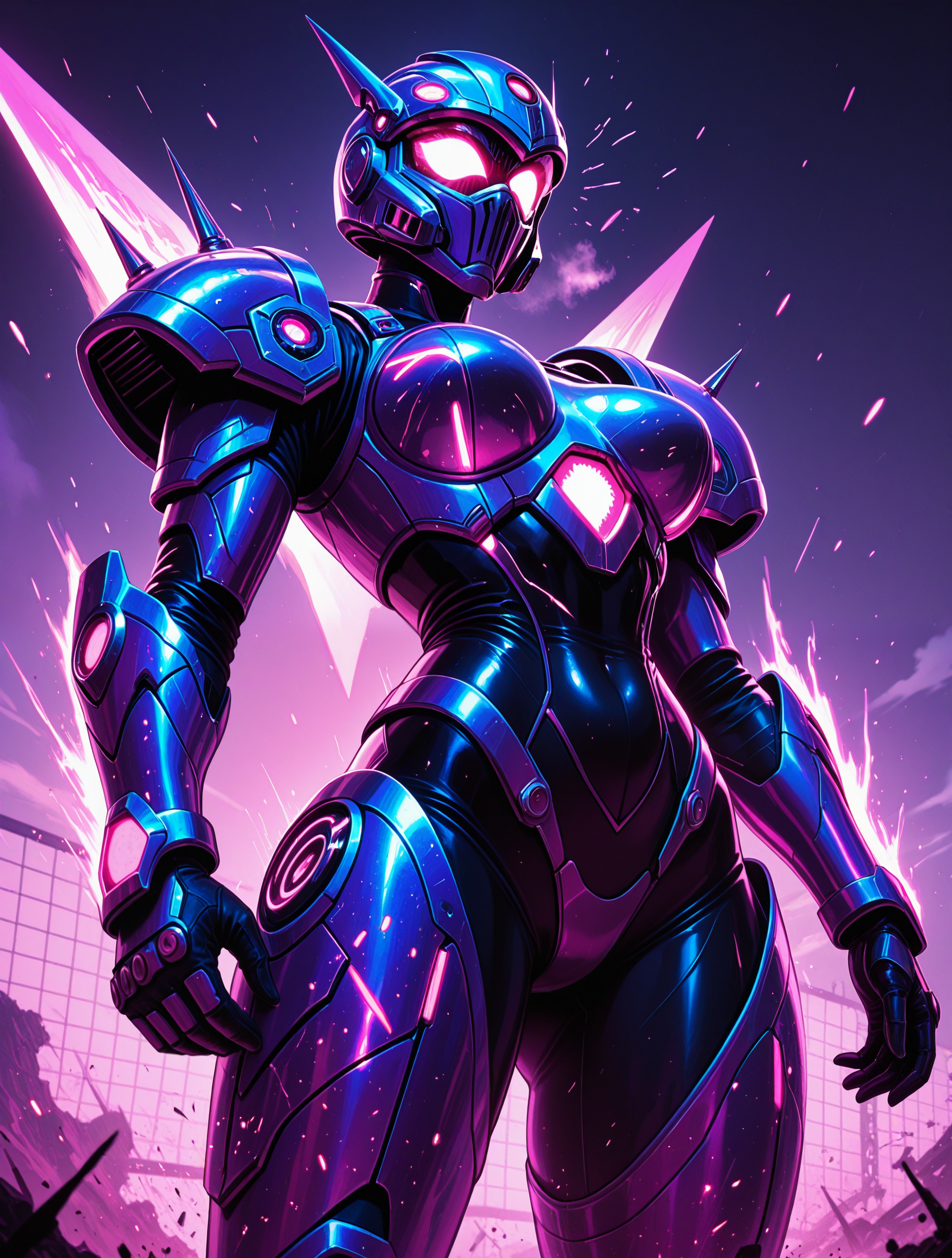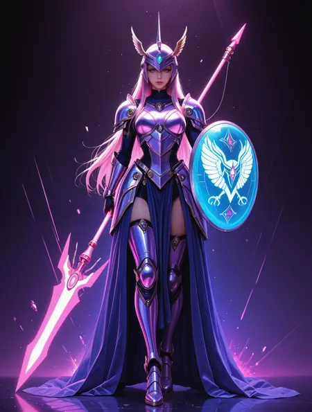 霓虹神话变形将古典希腊神话的宏伟与赛博朋克及合成波美学的脉动融合在一起:大理石神庙闪烁着电路纹路,战士身披镶有霓虹轨迹的青铜机械装甲,神话生物化身为璀璨的光之传奇。