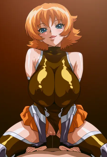 Trigger: 1girl, ts@kur@, orange hair, short hair, blue eyes, large breasts