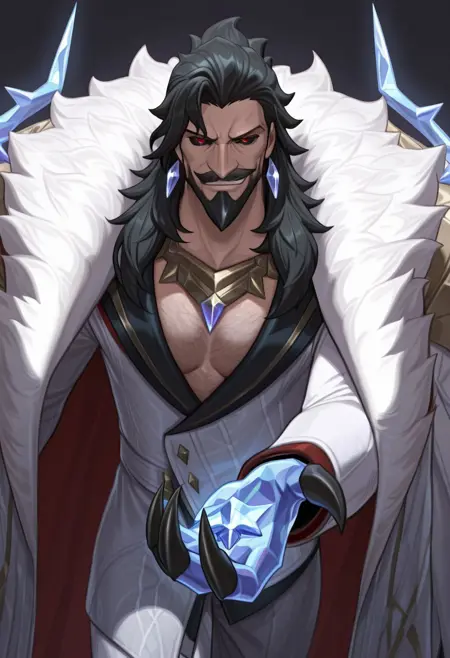 트리거 단어: 검은 머리, 빨간 눈, 털이 많은 남성, 성숙한 남성, 근육질, 수염, 귀걸이