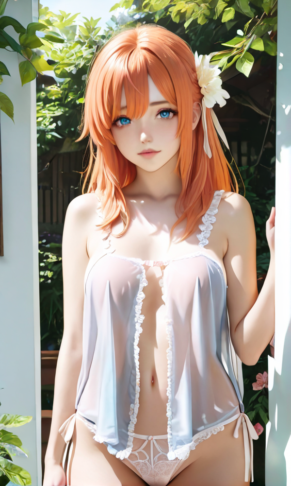 プロンプトワード: see_through_lingerie, underwear, panties, white panties, lingerie, babydoll, side-tie panties
