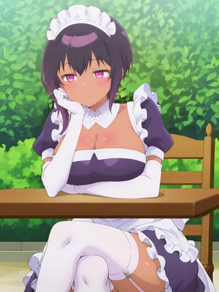 | 训练词汇 | lilithMa,short hair with long locks, black hair, bangs,dark-skinned female,large breasts, purple eyes,mole under eye,anime screenshot,已复制! lilithmaidDress,maid, maid headdress,detached collar, cleavage, mole on breast,dark purple puffy short sleeves, frills, white elbow gloves,long maid apron, white thighhighs,已复制! lilithReddress, bare shoulders,shoulder cutout, red collared shirt, red long sleeves dress, brown belt已复制! |