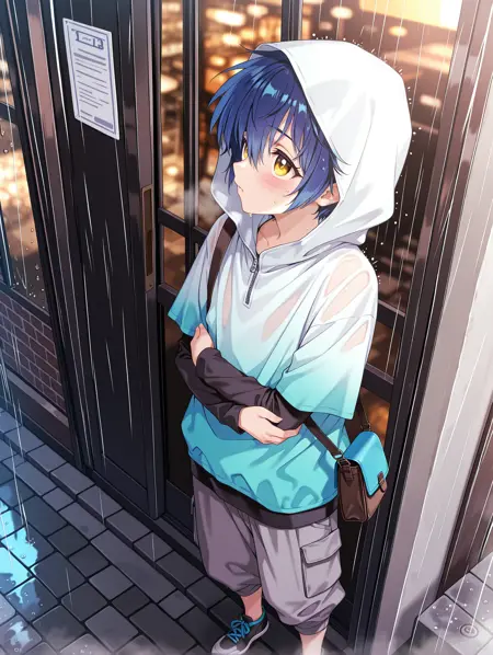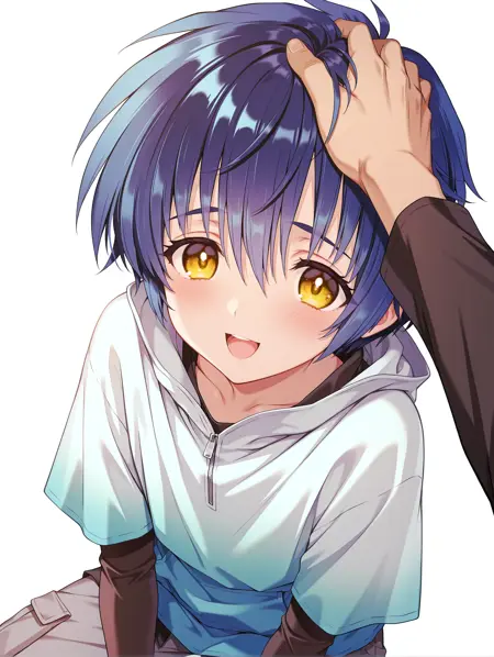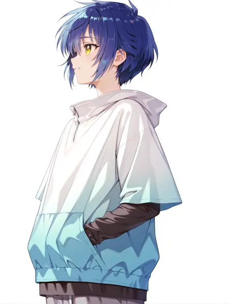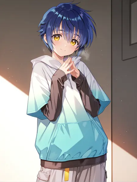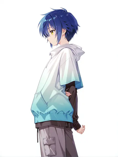 触发词:a_io, blue hair, yellow eyes, short hair
