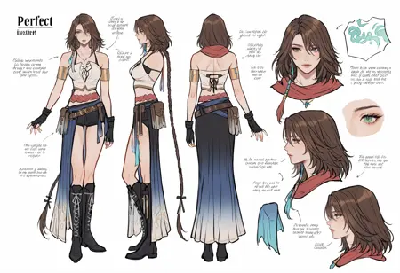 衣装2: メッシュ編み、長い髪、非常に長い髪、ショートパンツ、ブーツ、黒いショートパンツ、ジュエリー、中くらいの胸、胸、膝上ブーツ、ネックレス、スカート、腹部露出、長いスカート、短いショートパンツ、ベルト、腕輪、手袋、腕輪、クロスラッセシューティング、裸の肩、指なし手袋、スカーフ、イヤリング