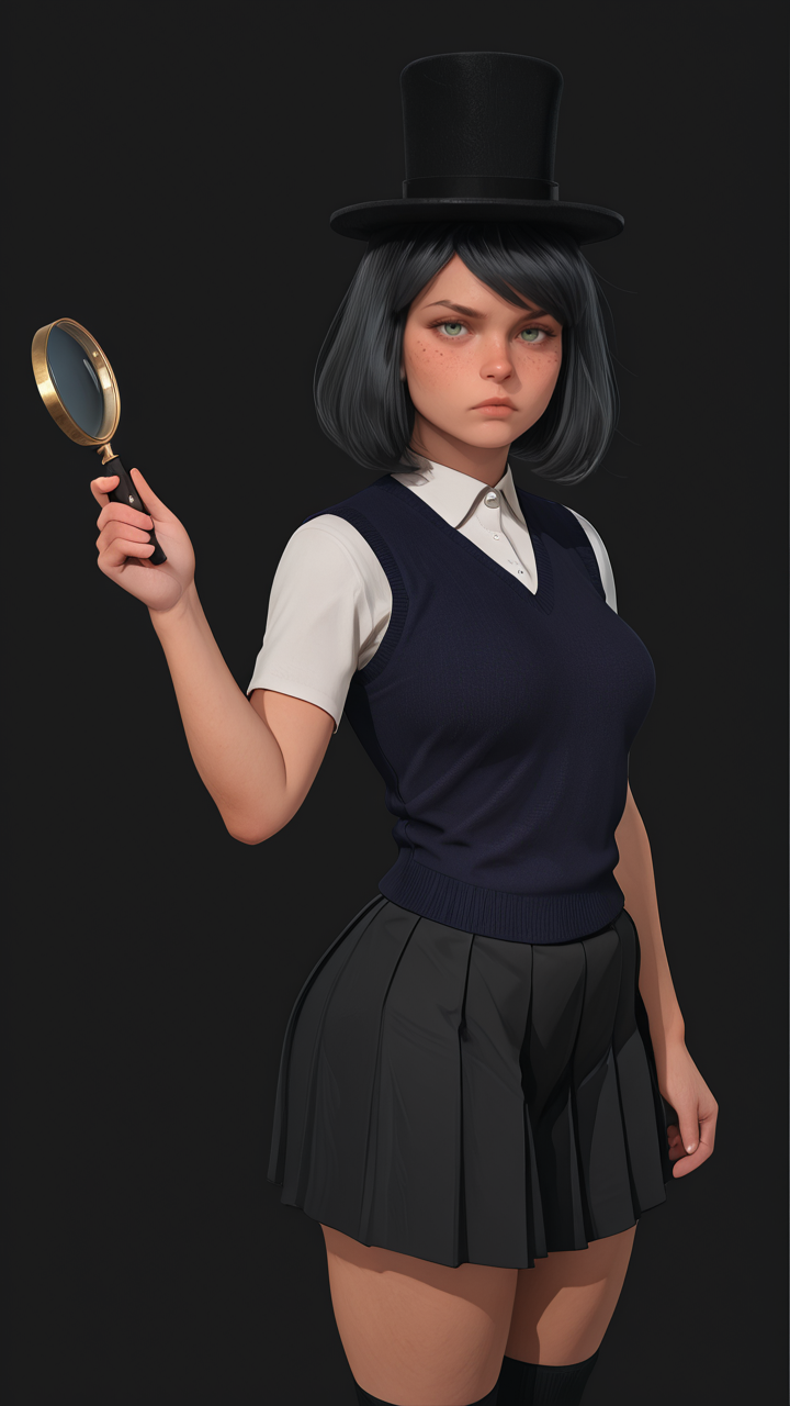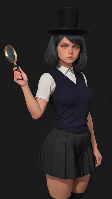 角色black haircleavageschool uniformmedium breasts女人underwearshort haircomedyadorablecamooverallssuper saiyannightwearthigh holsteroverall shortsathletic wearabove the clouds"roommate"psychopathadult visual novel characterretro athletic wearmundo gamesyeah, that's her "detective hat" haha!detective hat
