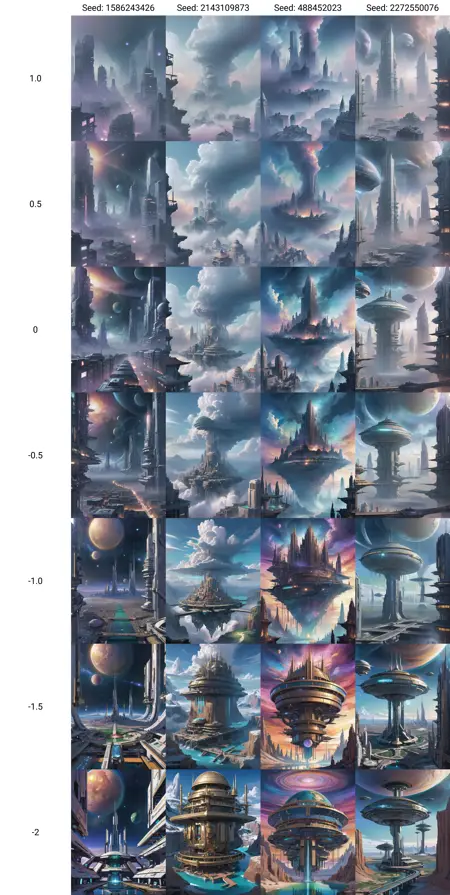 这是一个LECO,一种特殊类型的LoRA,用于增强Stable Diffusion对触发词的理解。此处的触发词是“haze”(雾霾)。如果正向加权此LoRA,则“haze”一词的效果会被加强;若负向加权,则效果会被削弱,甚至产生相反效果。