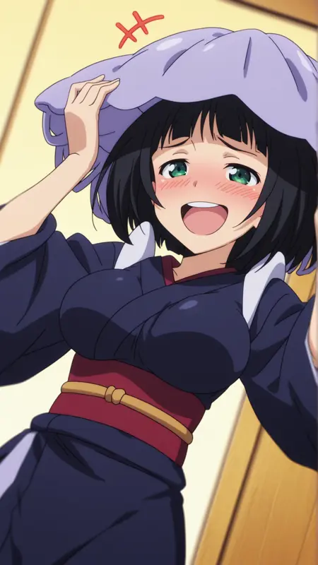 外見: 黒髪、ボブカット、緑の目、大きな胸,
