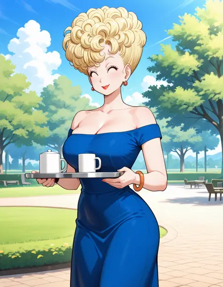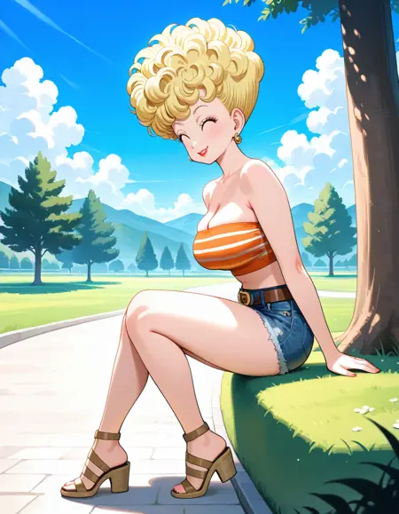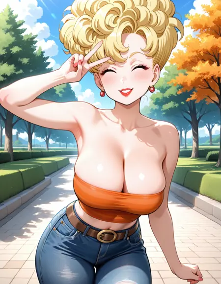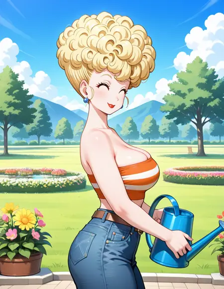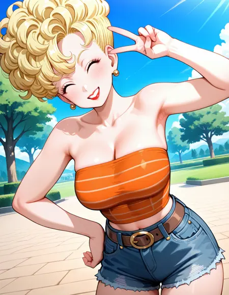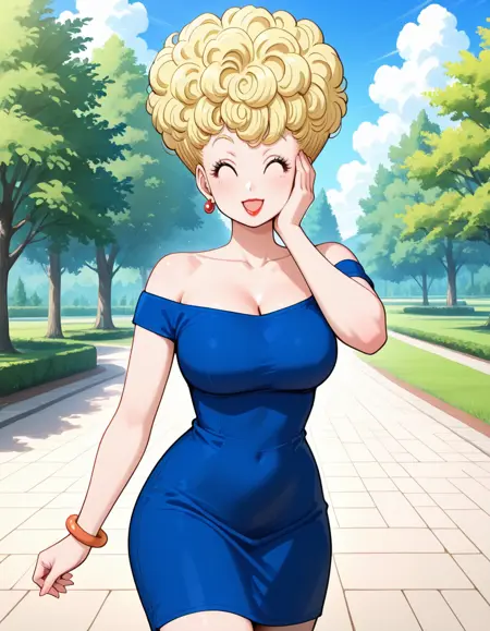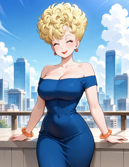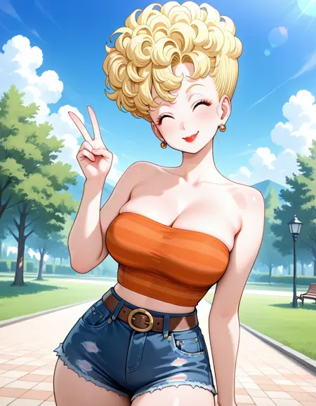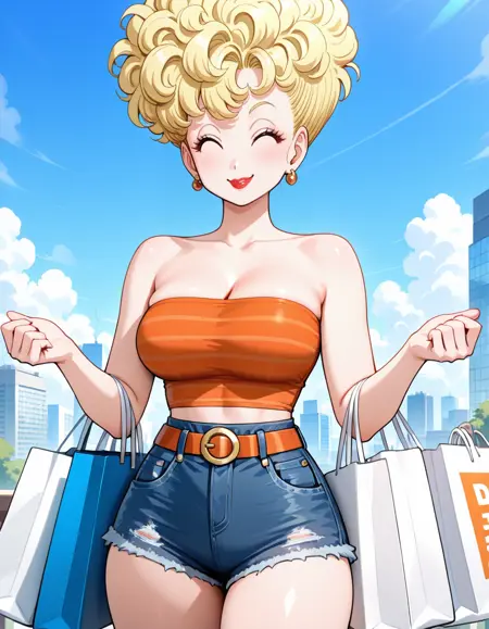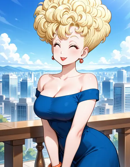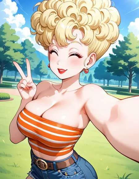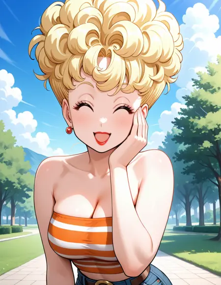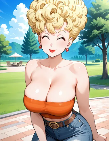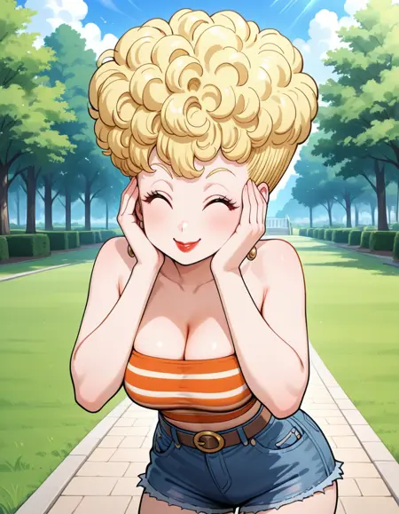 | 학습된 단어 | (bikini \(dragon ball\):0.6), (db-bikini, official style, smile, closed eyes, eyelashes, blonde hair, curly hair, updo, afro, earrings, red lips, mature female, large breasts, cleavage)복사됨! (blue dress, off-shoulder dress, collarbone, orange bracelet, red earrings, yellow high heels)복사됨! (orange striped tube top, belt, denim pants)복사됨! |