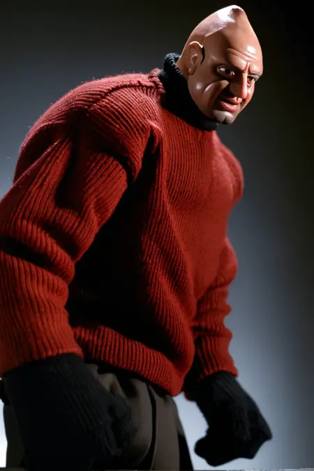 针头:pmpinhd 木偶,小头,穿着红色条纹毛衣,黑色无指手套,巨手