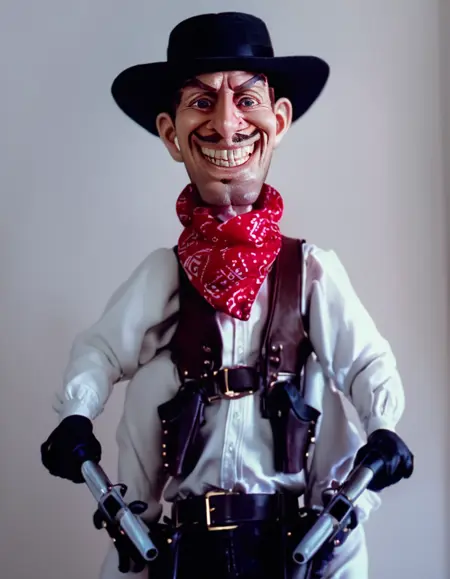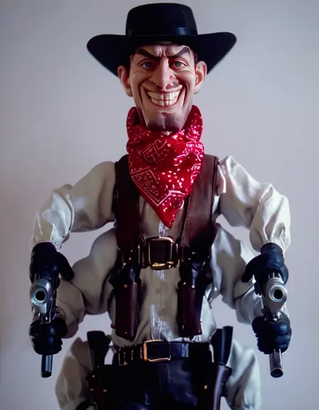 シックス・ショーター:pmxshtr puppet、余分な腕、6本の腕、赤いバンダナ、xshtrカウボーイ服、黒手袋、黒いカウボーイハット、リボルバーとホルスター所持