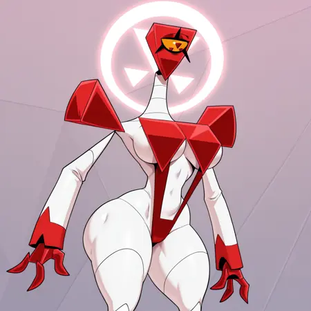 | 训练词汇 | pr1m4l_red, ambiguous gender, solo, noseless, mouthless, alien, pokemon \(species\), 1 eye, floating head, floating torso, floating hands, triangle \(shape\), red eyes, yellow sclera, eyelashes, object head, metallic body, red shoulders, white body, white arms, red hands, 3 fingers, red breastplate,已复制! red halo, red magic runes已复制! white halo, white magic runes已复制! full-length portrait, long legs, high heels, red shoes,已复制! |