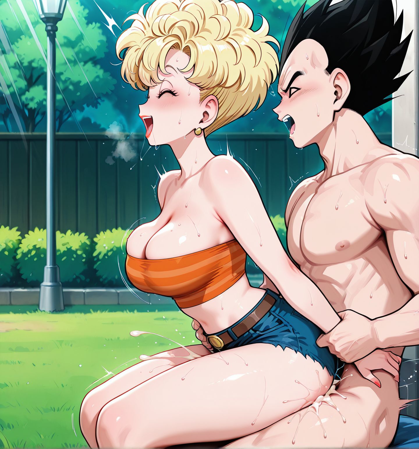 뒤에서 성교, (역코우걸 자세), 허리 잡기, 음순에 정액, 혀,
