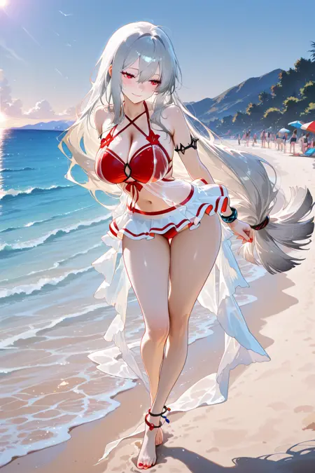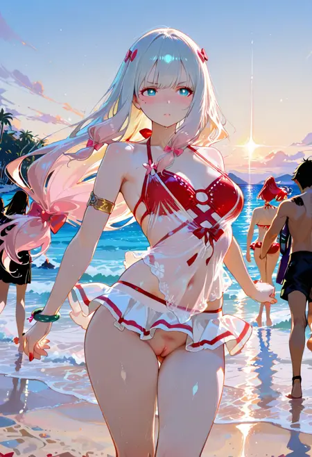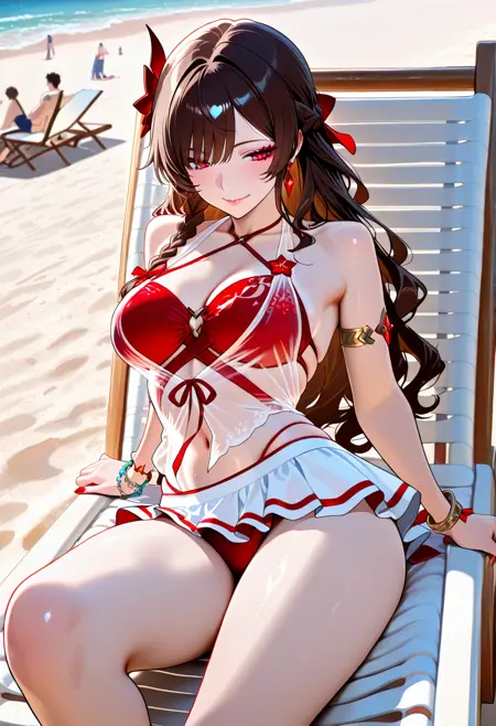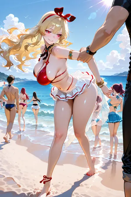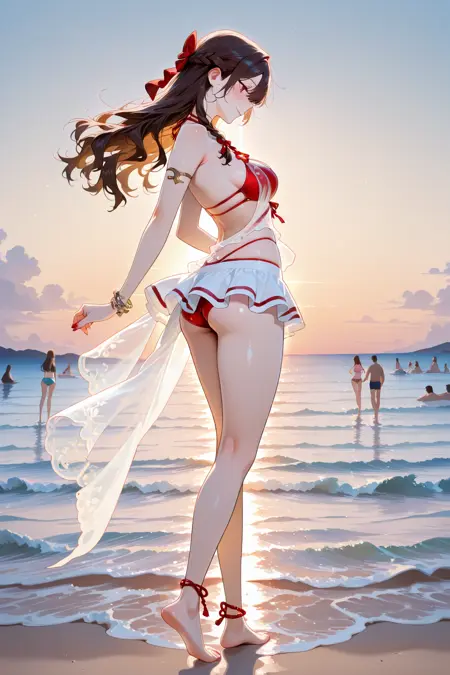 触发词(Trigger word)****: yulinglong,swimsuit,bikini,see-through,red bikini,armlet,bracelet,ribbon,white skirt,anklet,miniskirt,sarong,