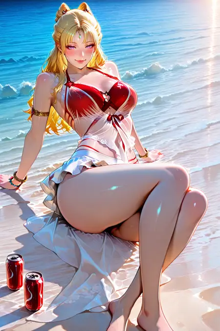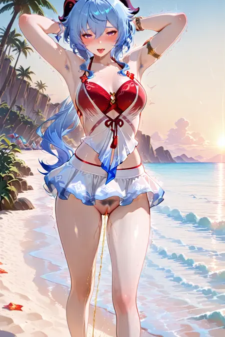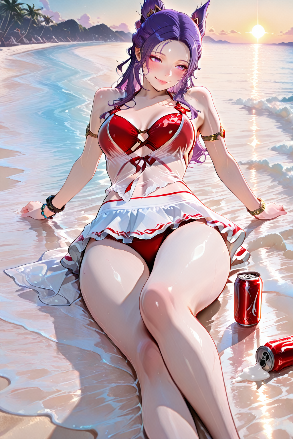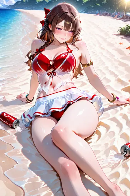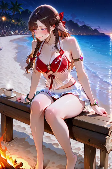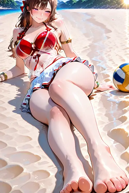 - yulinglong,swimsuit,bikini,see-through,red bikini,armlet,bracelet,ribbon,white skirt,anklet,miniskirt,sarong,