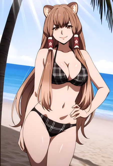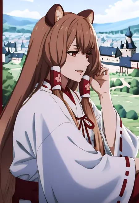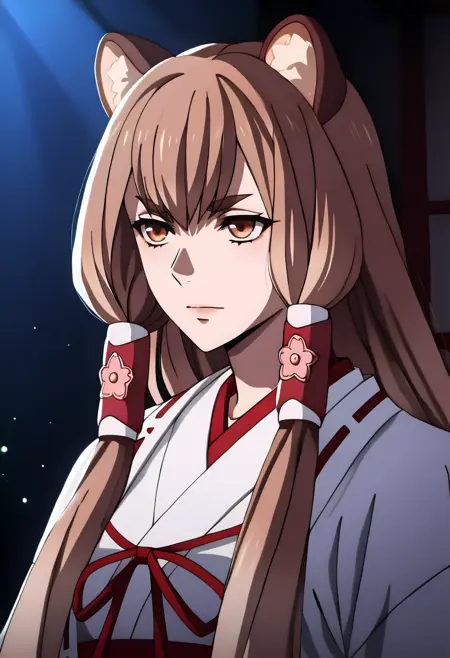 1girl, solo, very long hair, gradient hair, light brown hair, brown hair, hair between eyes, long sidelocks, blunt bangs, hair tubes, raccoon ears, brown eyes