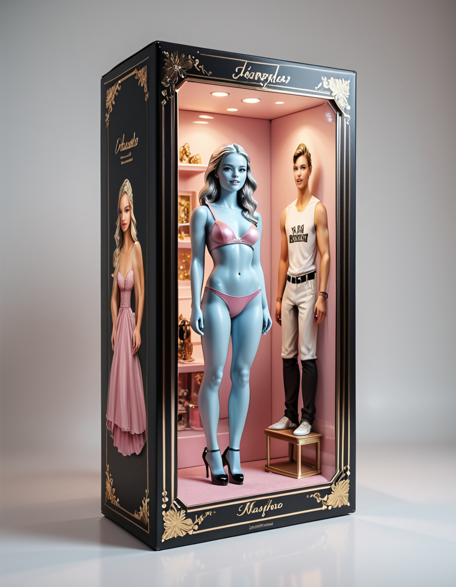 J’ai voulu créer une nouvelle version de mes boîtes avec figurines. Cette fois-ci, j’ai choisi un design beaucoup plus épuré, avec le moins d’écritures possible sur la boîte. L’idée est d’avoir une présentation neutre : des figurines sans identité précise, dans un emballage sobre et universel. De cette manière, il devient très facile de personnaliser chaque boîte par la suite, soit en sélectionnant un personnage au hasard, soit en ajoutant une inscription ou un élément visuel différent selon le besoin.