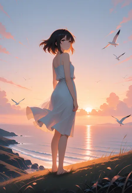 프롬프트 예시:anime, 1girl, 긴 흐르는 머리, 세부적인 눈, 부드러운 조명, 우아한 배경