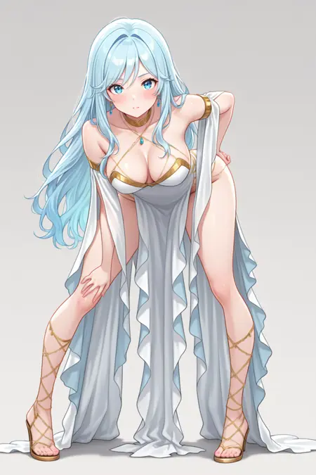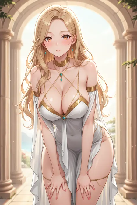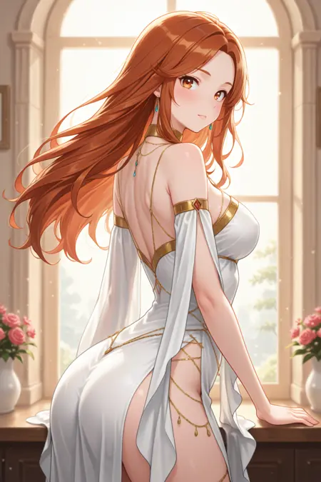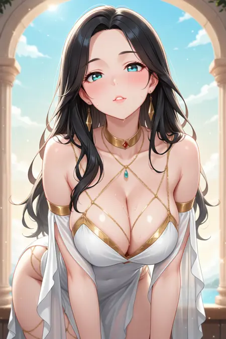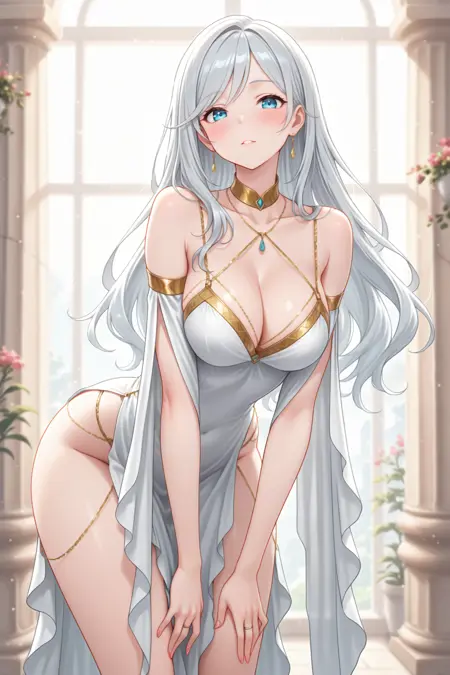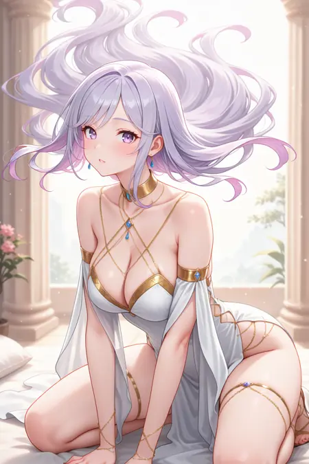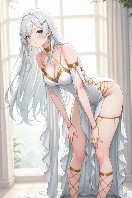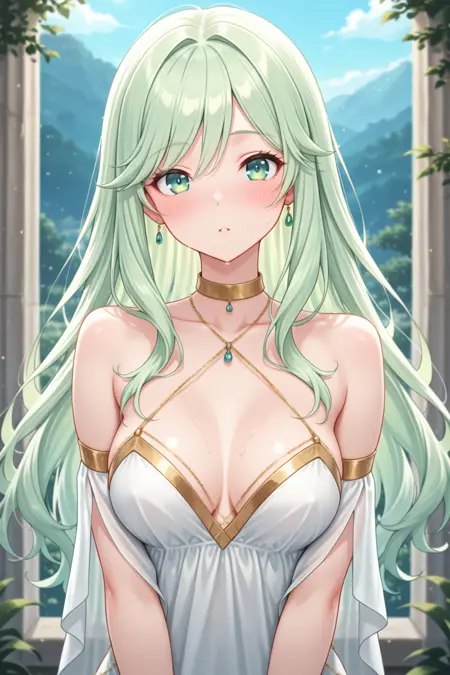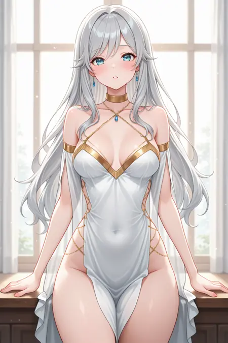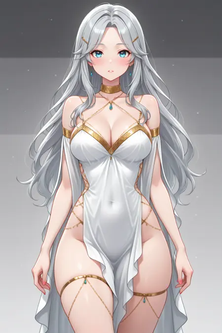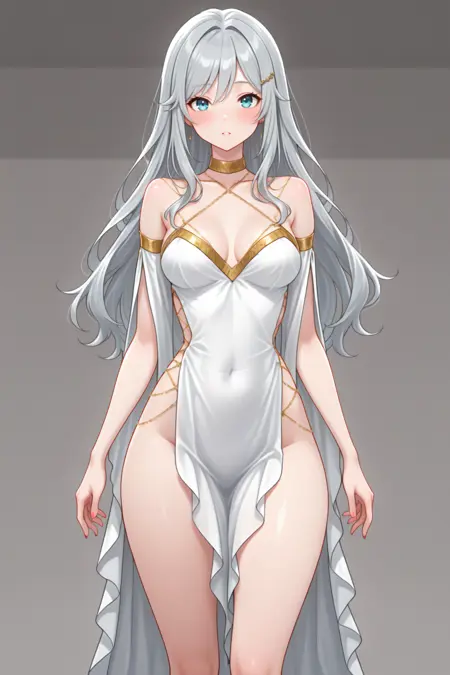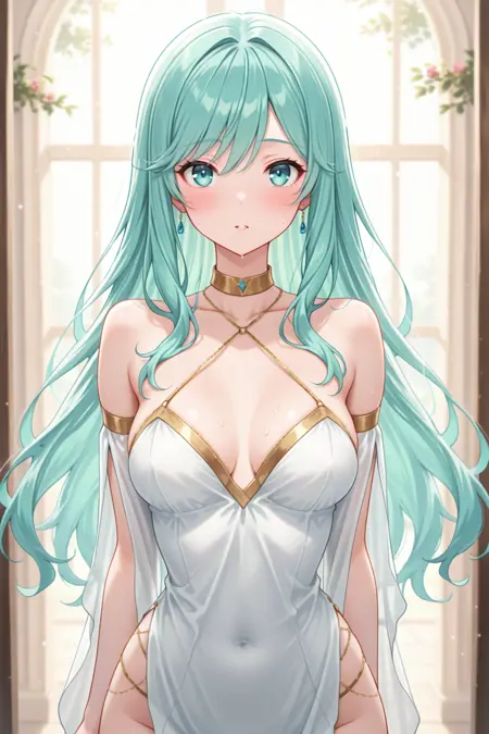 1girl, solo, wh1tedr3ss, bare shoulders, jewelry, looking at viewer,